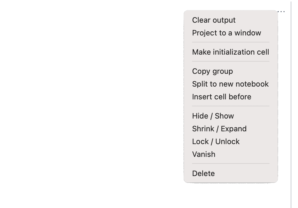 - Split to new notebook - cuts all cells below and inserts to a new notebook