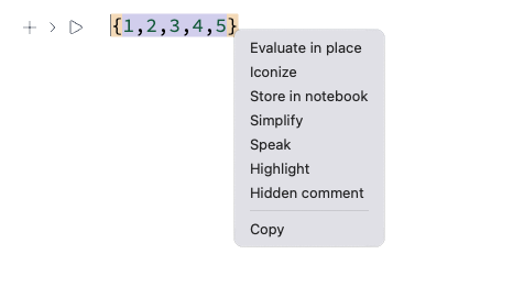 - Store in notebook - copies an expression to a notebook storage (see NotebookStore symbol)